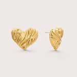 Heart shape statement earrings featuring unique carving throughout.