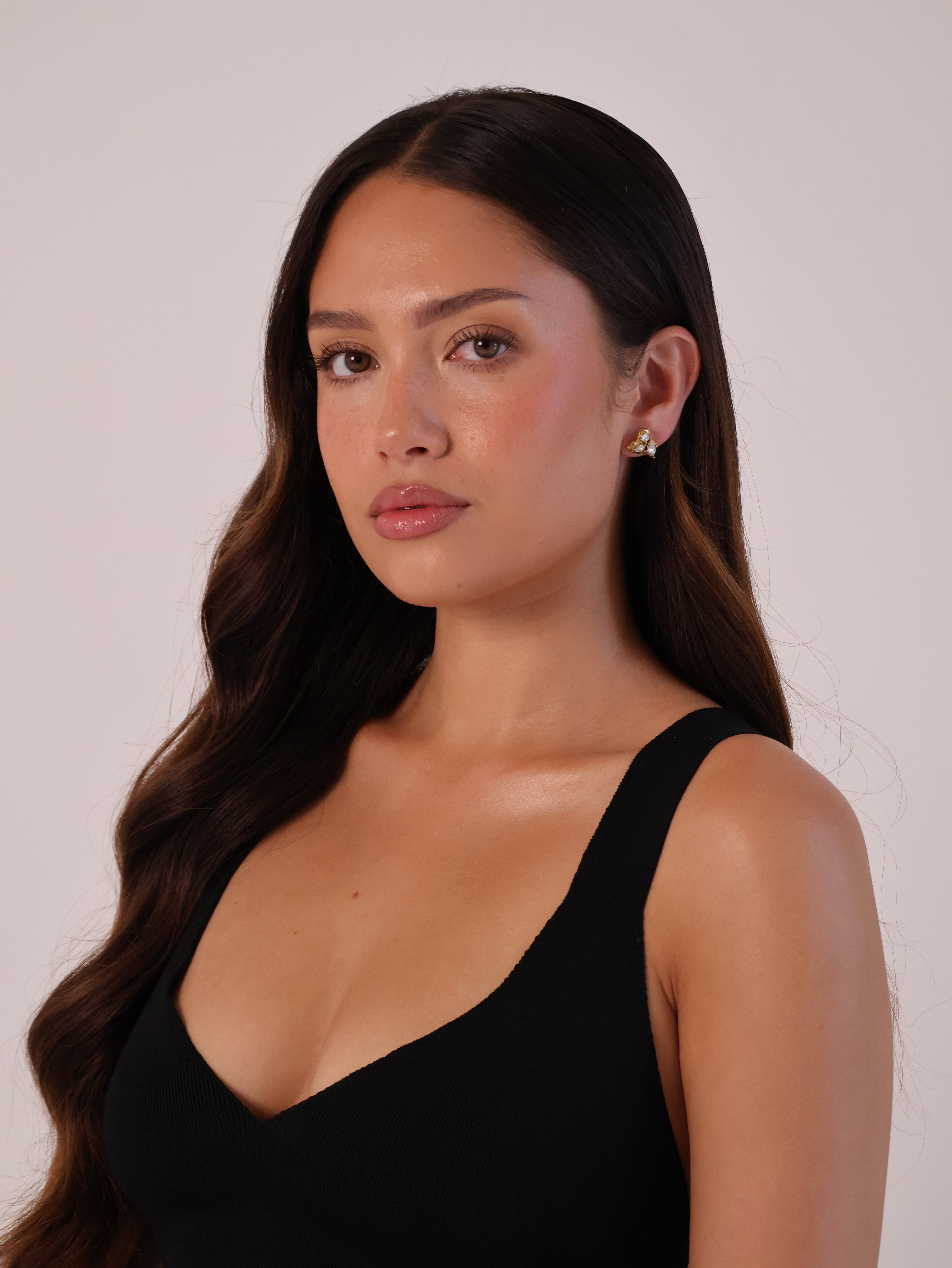The quartet cluster earrings features a cluster of four asymmetrical stones. Perfectly paired with the cluster trio earrings and the cluster duo earrings.